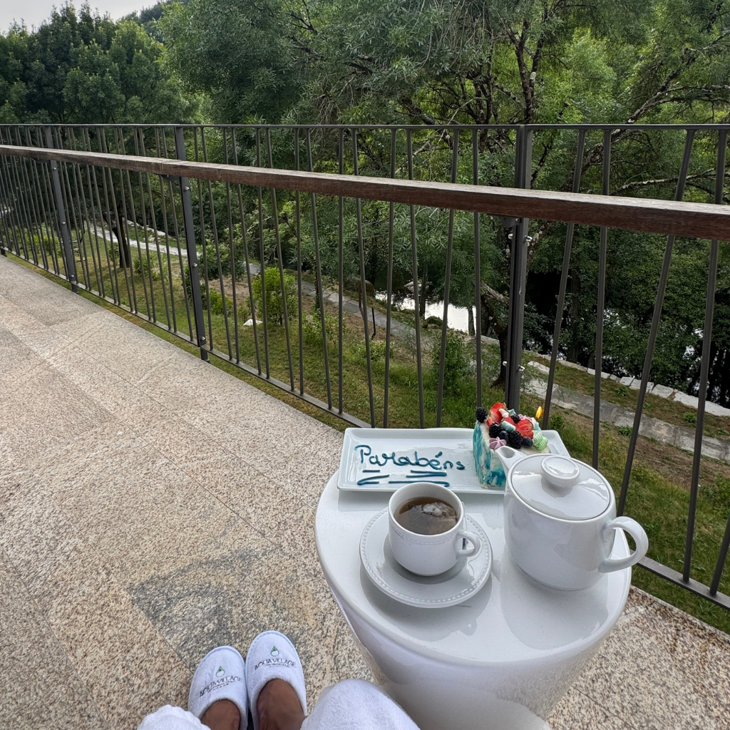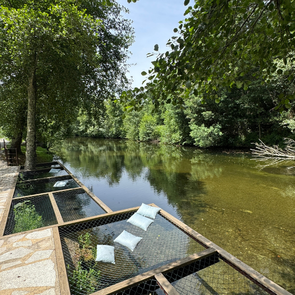 Acordar com a vista do Rio Alva, desfrutar da banheira de hidromassagem na varanda e relaxar nas piscinas aquecidas cria uma sensação única de bem-estar e tranquilidade.