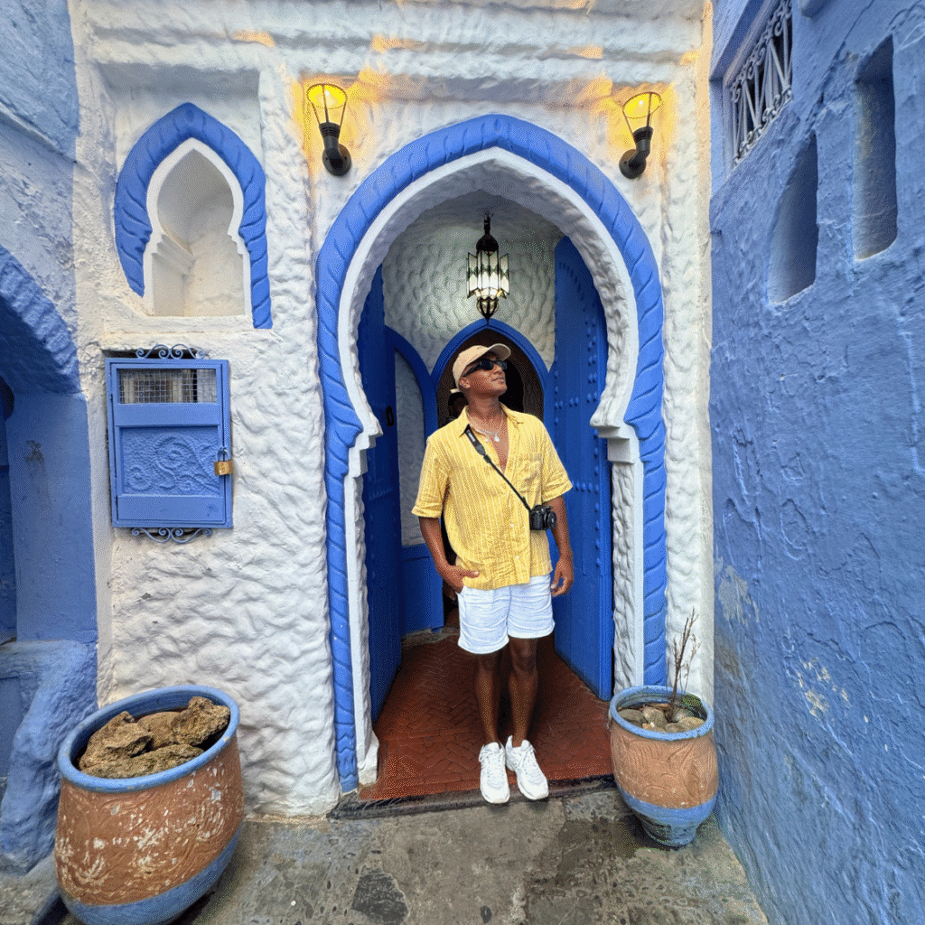 Entre as montanhas do Rif, no norte de Marrocos, encontra-se Chefchaouen, conhecida como a cidade mais azul do mundo e um dos destinos mais encantadores que já visitei. As suas ruelas estreitas, casas pintadas em tons vibrantes de azul e o contraste com portas e escadarias brancas criam um cenário digno de cinema. Viajar para Chefchaouen é como caminhar dentro de uma pintura viva, onde cada esquina rende uma nova fotografia.