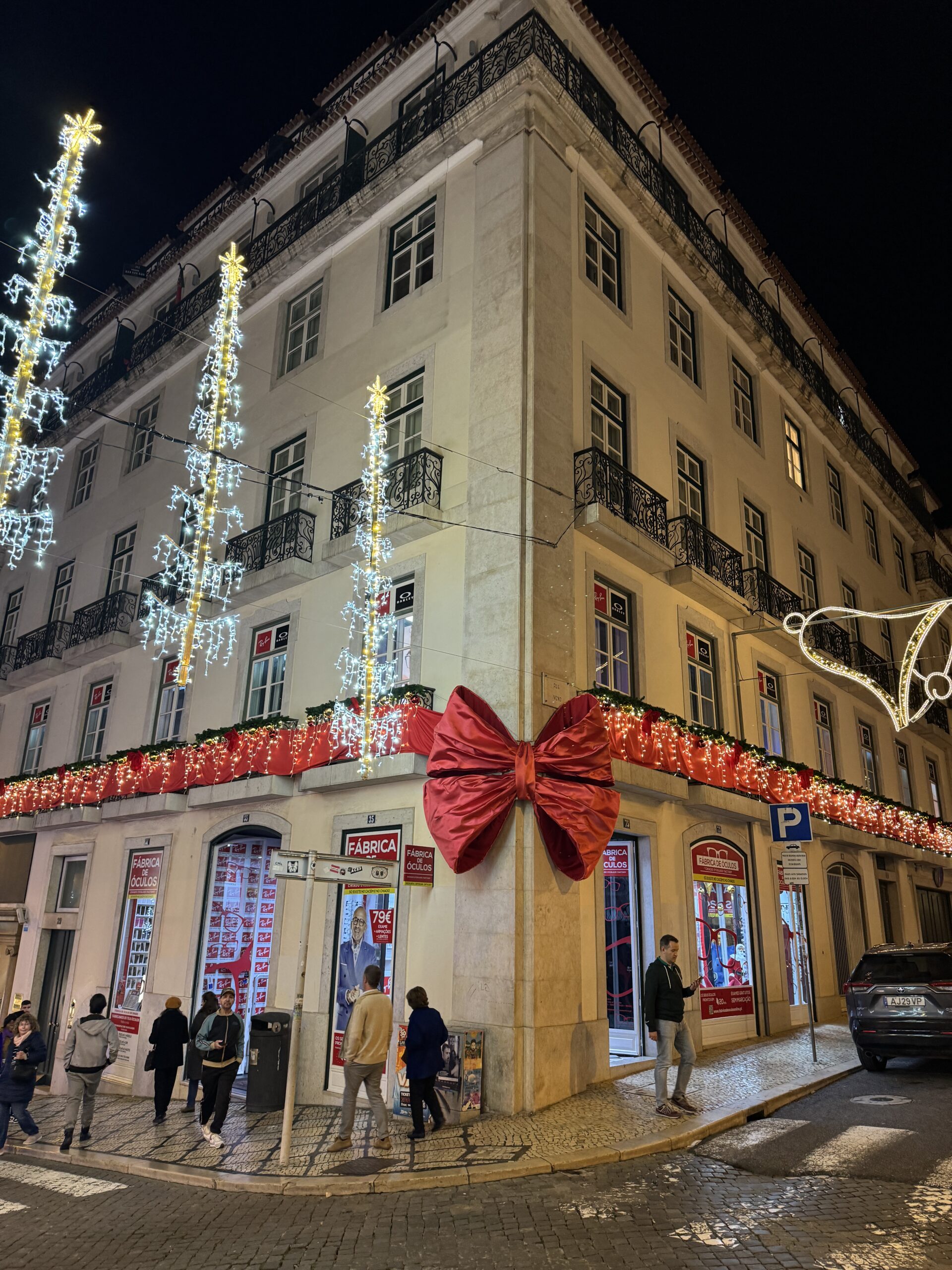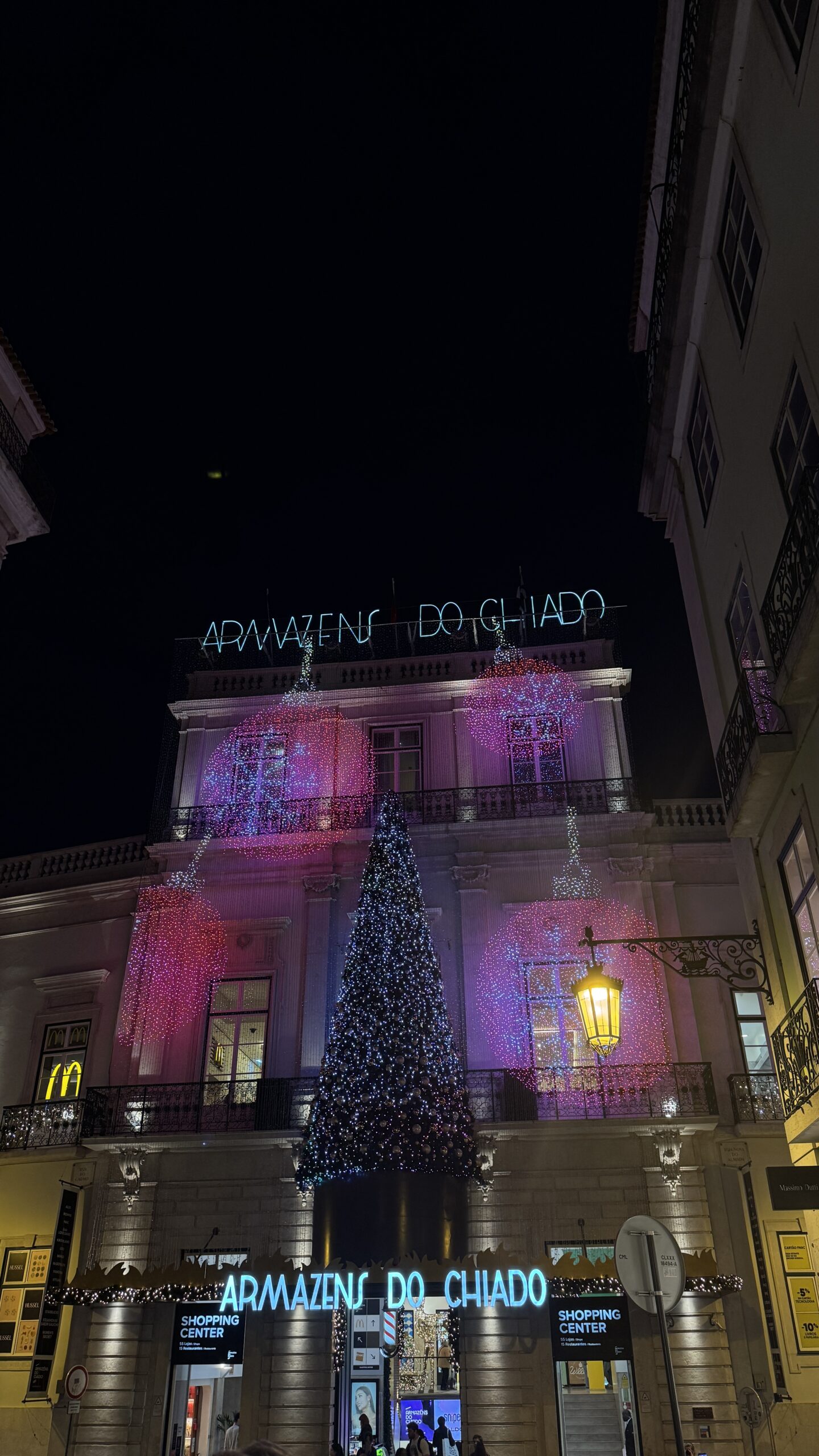 A fachada dos Armazéns do Chiado transforma-se todos os anos num verdadeiro postal iluminado, marcando o arranque oficial das celebrações natalinas no centro da cidade.