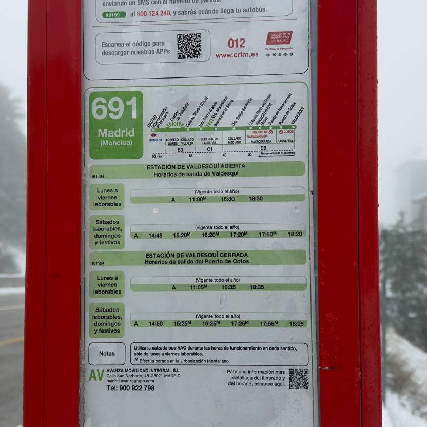 Em dias de muita neve, o autocarro pode não subir até ao topo, terminando o percurso em Puerto de Cotos. Mesmo assim, já é possível aproveitar bastante a neve e a paisagem.