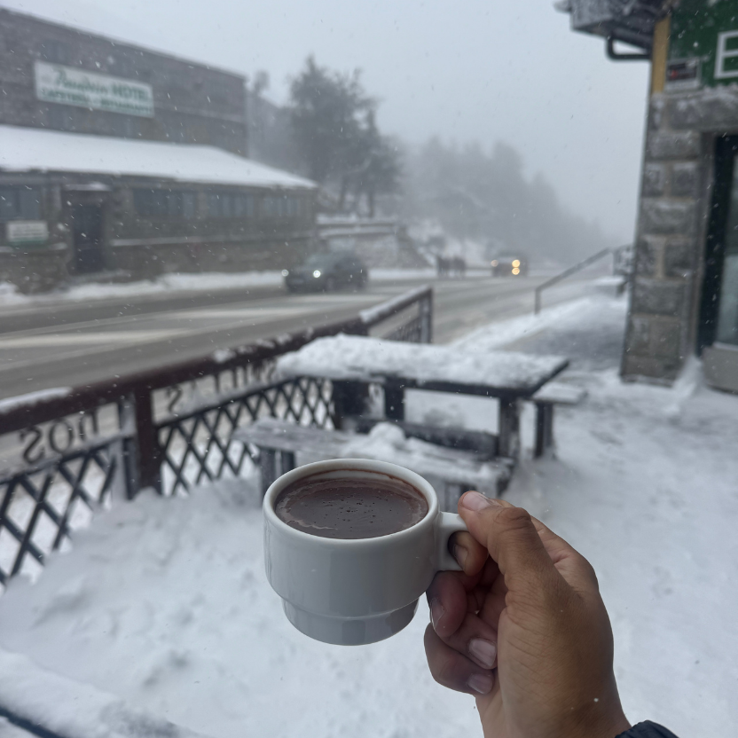Eu aproveitei para tomar um chocolate quente e almoçar na cafeteria Los Castillas, que era a única opção aberta naquele dia. A comida foi simples, mas salvou a experiência, especialmente no frio intenso.