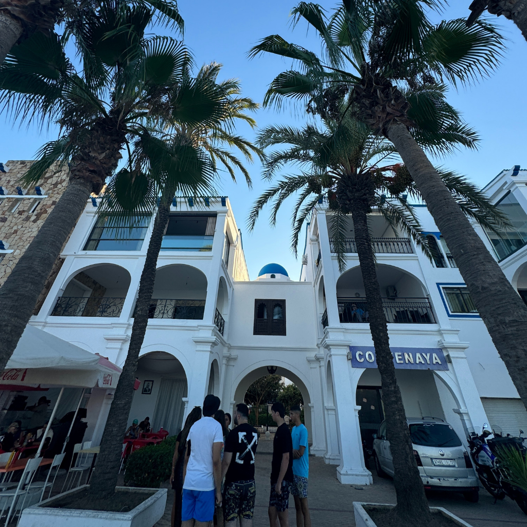 Logo ao chegar, foi impossível não me impressionar com a vista das colinas que envolvem a cidade. O contraste entre o branco das casas, o colorido das portas e o vai e vem das pessoas na medina antiga cria uma atmosfera viva e autêntica, tudo pulsa ao seu próprio ritmo.